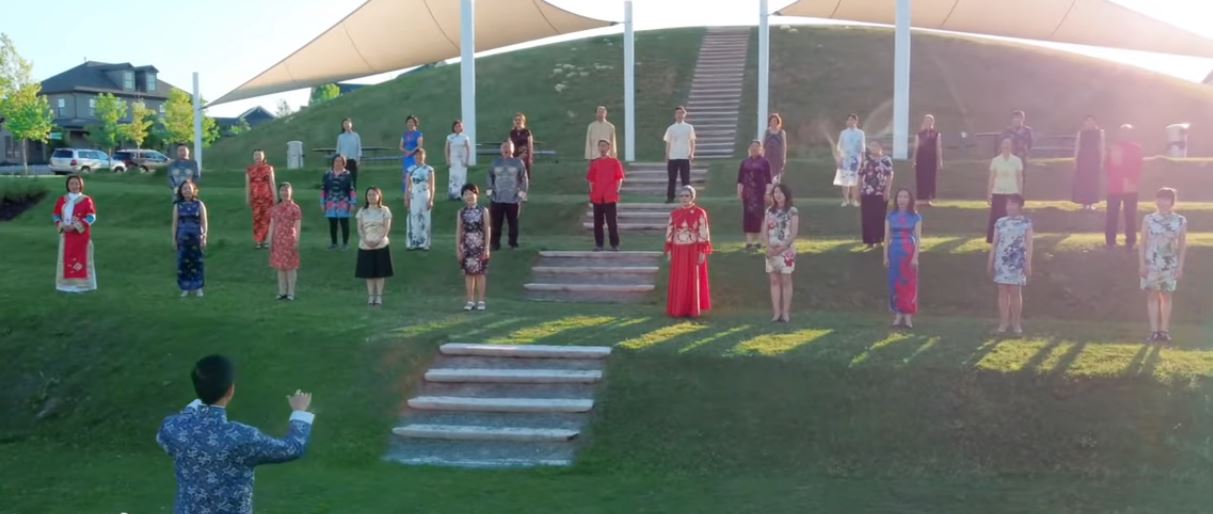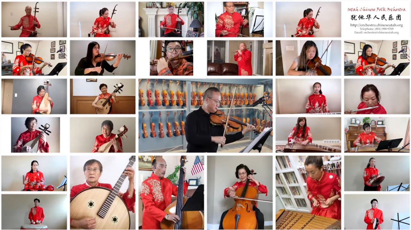 虽然疫情当前,犹他州当地文艺团体也克服重重困难,为晚会编排了许多优美节目。由梁中枢指挥的犹他华人民乐团向观众呈上了别具一格的器乐合奏《花好月圆》,以关丽芬为团长、黄育峰为指导的盐湖华人合唱团演唱了动听的《后窗》、《鹊桥仙》,由顾文沅指挥的圣丹斯司戈蓉交响乐团演奏了传统乐曲《茉莉花》与《紫竹调》,戴芳盈为晚会表演了古筝独奏《渔舟唱晚》,韩维激情演唱了《七月的草原》,由张莉指导的盐湖城华助中心舞蹈队表演了舞蹈《我和我的祖国》。